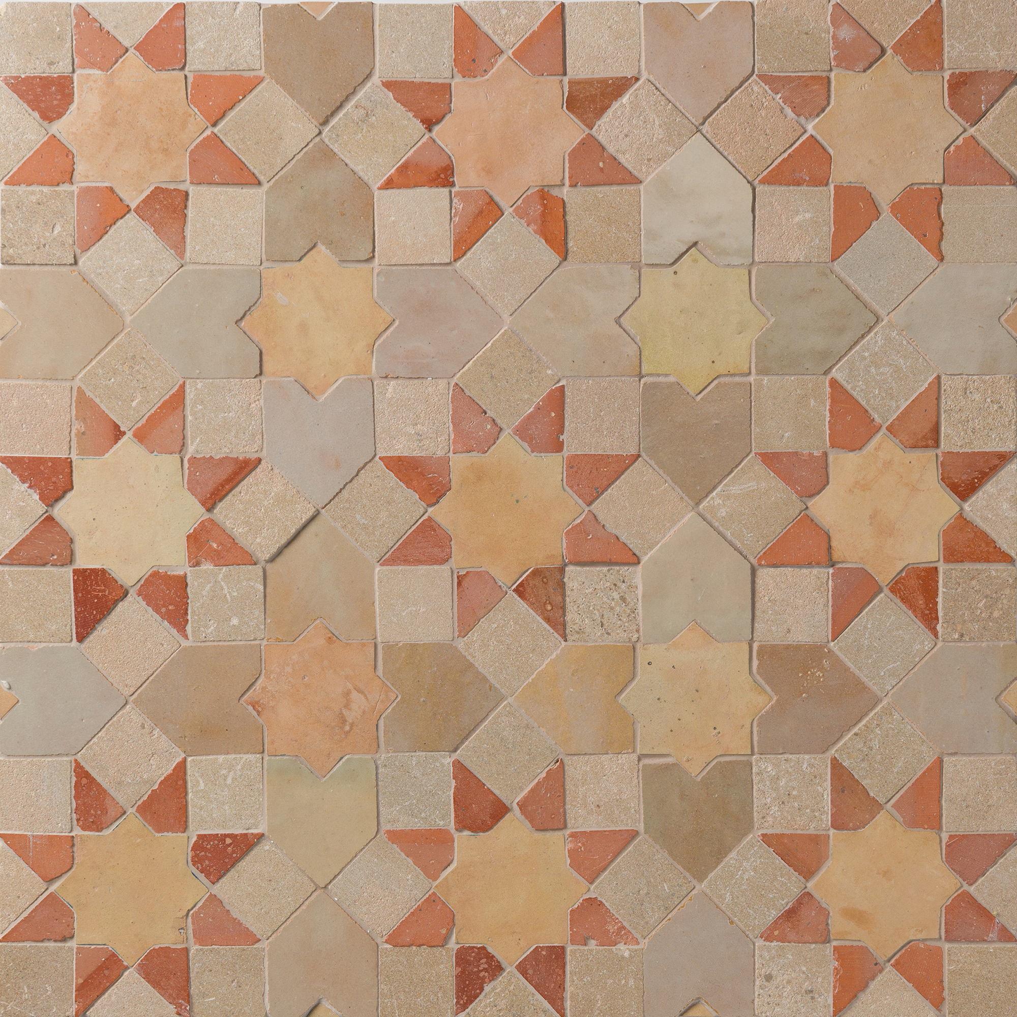 Mélange Mosaics are made entirely by hand from Natural Stone, Terracotta and Zellige tiles. Each piece/sheet will show variation in color and texture. The following characteristics are intended in this product and are part of its overall aesthetic.